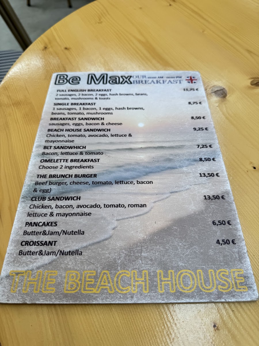 Be Max Beach House offers a menu that blends Mediterranean flavors with relaxed, beachside dining. The selection is approachable and varied, featuring casual bites alongside heartier dishes that suit different times of the day and moods. From morning breakfasts to evening dinners, the menu invites guests to enjoy satisfying meals that feel at home by the sea.