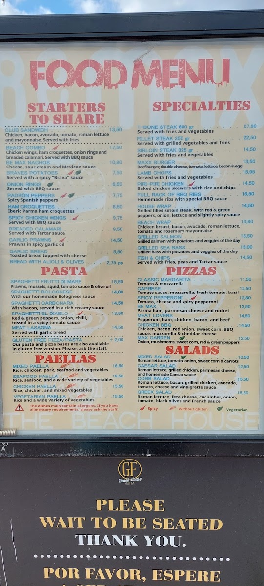 You'll find well-loved staples like Chicken Paella and Spaghetti Frutti Di Mare, perfect for a leisurely lunch while soaking in the coastal atmosphere. For something more casual or sharable, options such as Pizza Pepperoni, Maxx Burger, and Cheesy Garlic Bread offer comforting familiarity alongside fresh ingredients. Meats like Lamb Chops and Sirloin Steak cater to those seeking a more substantial dinner, suited to the warm evenings and relaxed beach vibes.